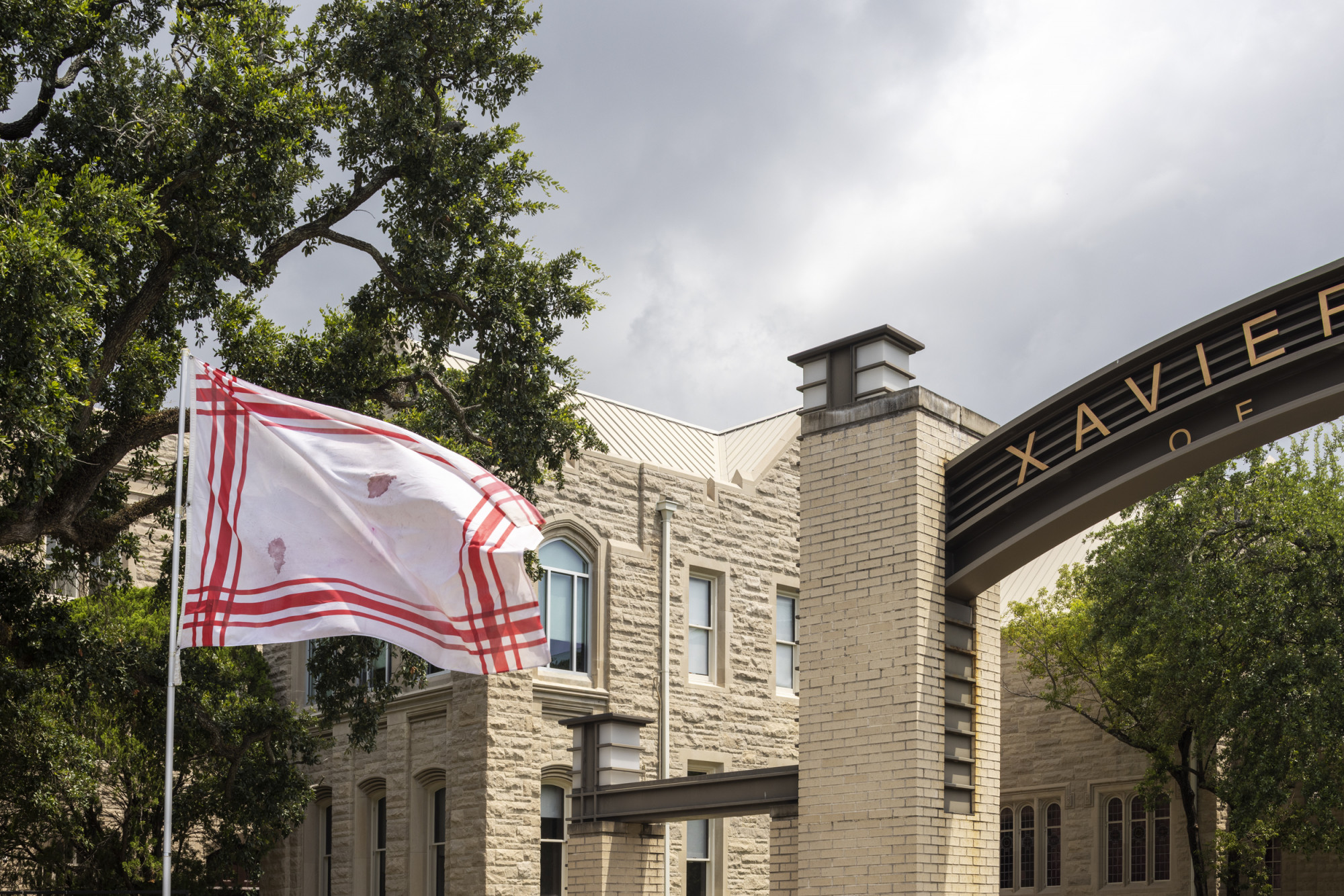 Installation of Elena Del Rivero’s flag on Xavier University campus, New Orleans, Louisiana, 2020-2021. Photo: Alex Marks