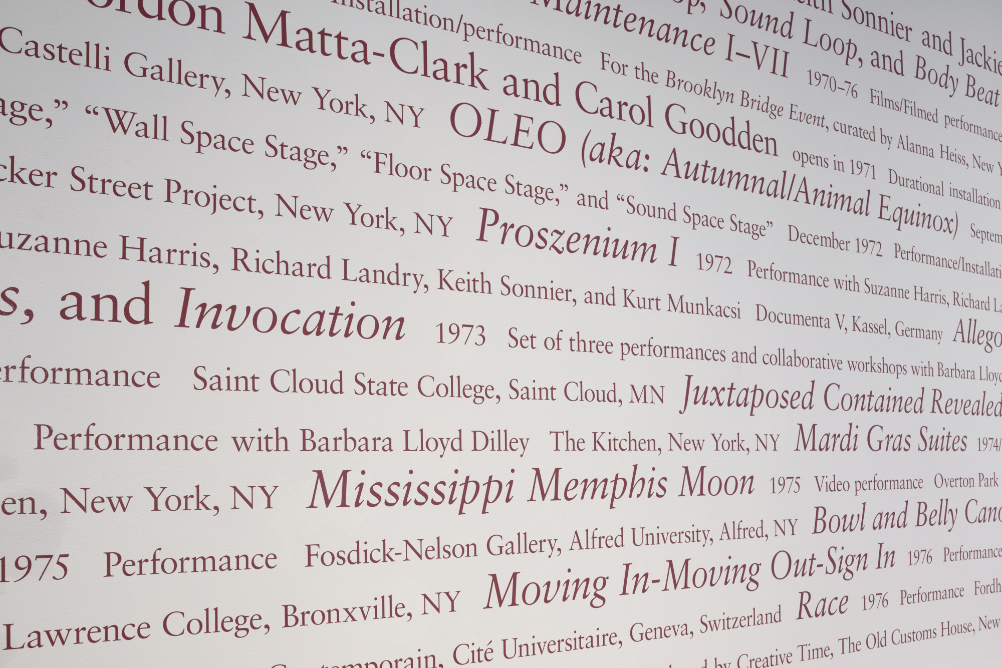 Installation photo of ‘Tina Girouard: SIGN-IN’ at the Center for Art, Research and Alliances (CARA-NY), New York, NY, 2024. Photo: Kris Graves.